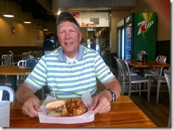 Time to eat . . . and head to Magnolia Plantation . Half a hamburger at “Charleston’s burger”